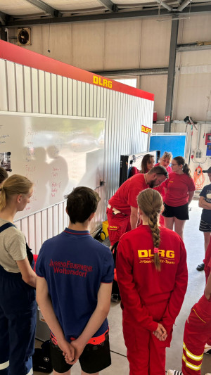 Sowohl feuerwehrtechnische als auch DLRG-relevante Themen wurden behandelt. Unsere JETis lernten, wie man eine Wasserversorgung richtig aufbaut. Zudem erhielt die Jugendfeuerwehr einen Einblick in die Fachbereiche Tauchen und Strömungsrettung.